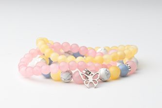 Rózsakvarc aura – fazettált angyal aura – repesztett hegyikristály hópelyhes karkötő